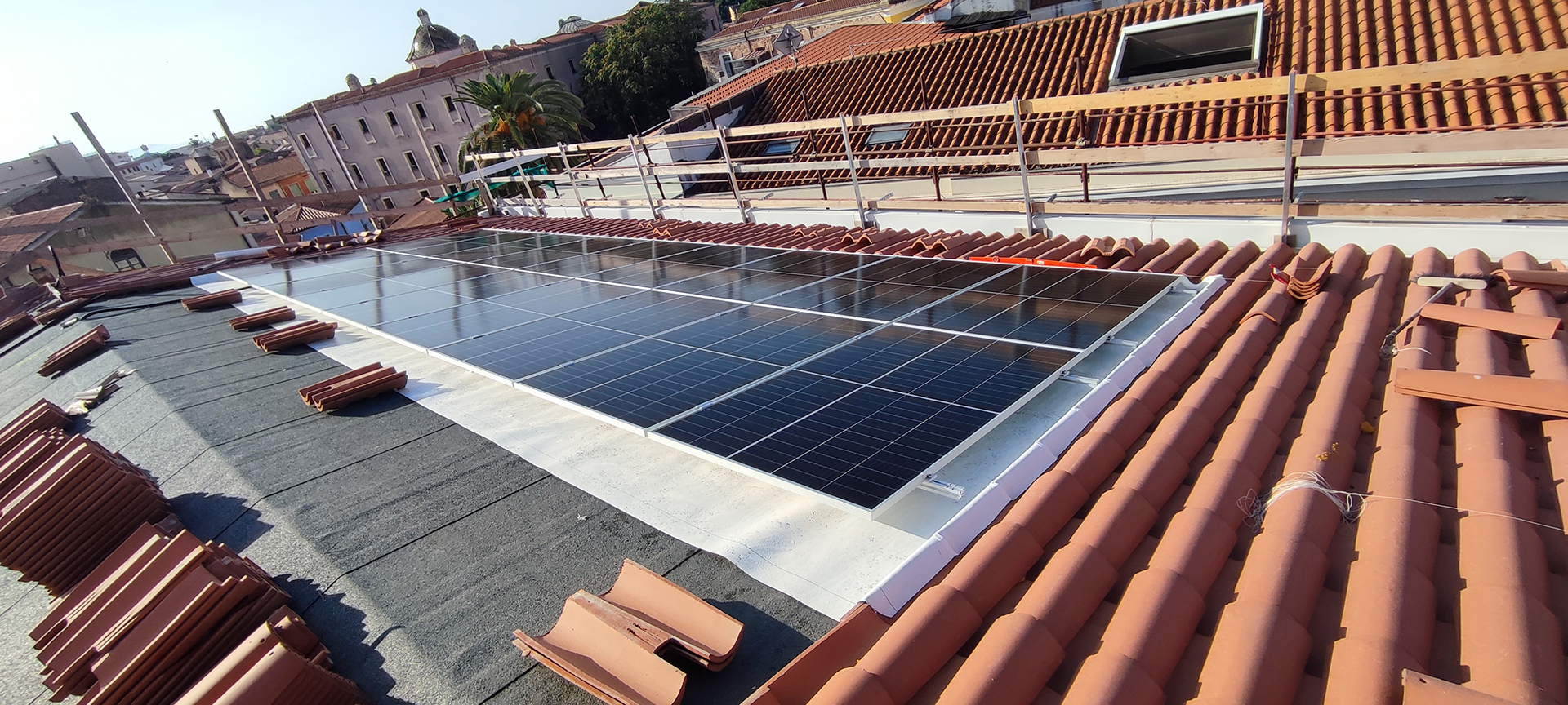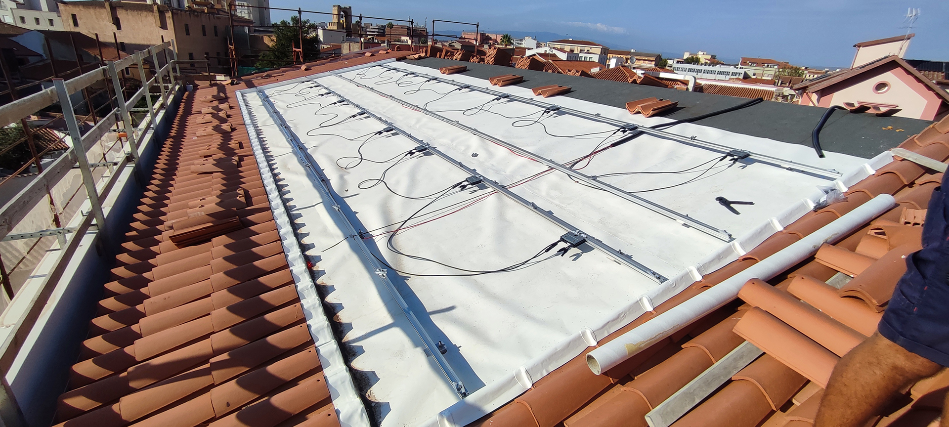 Un impianto fotovoltaico semintegrato è una soluzione ibrida tra un impianto tradizionale e uno completamente integrato. In questo caso, i pannelli fotovoltaici vengono installati parzialmente integrati nella struttura dell’edificio, solitamente su tetti o facciate. Questa soluzione offre un equilibrio ideale tra efficienza energetica e impatto estetico, rendendolo un’opzione perfetta per chi desidera ridurre l’impatto visivo senza compromettere la produzione di energia pulita. È adatto a edifici residenziali e commerciali che necessitano di un’installazione elegante e discreta.